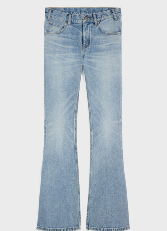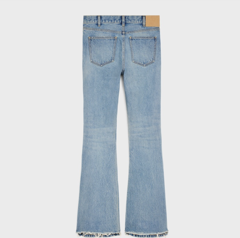 이 셀린느 팬츠의 특징은 부츠컷 실루엣 디테일로 허벅지는 슬림하게 잡아주면서 밑단이 살짝 퍼지는 핏을 보여주며, 연청 워싱을 통해 빈티지한 느낌의 밝은 블루 컬러를 볼 수 있는데 제가 보기에도 정통 워시데님의 멋을 느낄 수 있네요