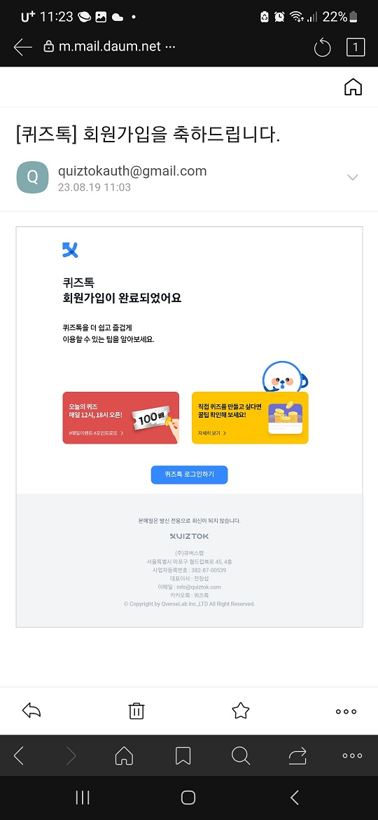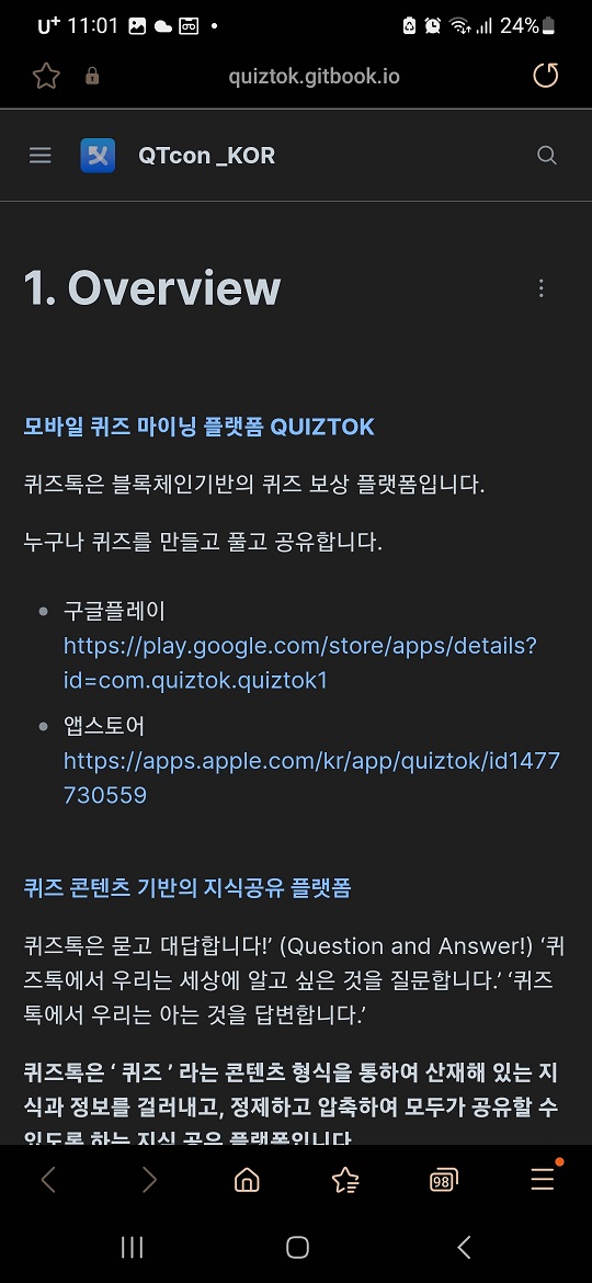 위에 내용을 보시듯이 퀴즈톡 코인은 백서의 내용에 충실하며 실체가 있는 코인임이 분명하며 제가 사이트에 가입하여 살펴보니 정말 퀴즈도 낼 수 있고 풀 수도 있는 사이트임을 확인하였습니다.